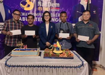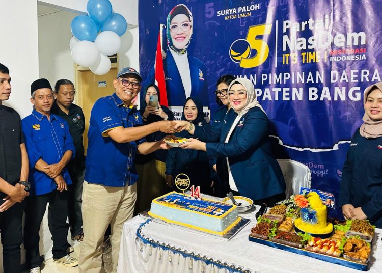 BERITABANGGAI.COM, LUWUK- DPD Partai NasDem Kabupaten Banggai menggelar peringatan hari ulang tahun Partai NasDem ke 14 tahun 2025 di Sekretariat DPD Partai NasDem Kabupaten Banggai pada Selasa (11/11/2025). Peringatan HUT Partai NasDem ditandai dengan pemotongan tumpeng serentak secara nasional, termasuk yang dilaksanakan oleh DPD Partai NasDem Kabupaten Banggai.