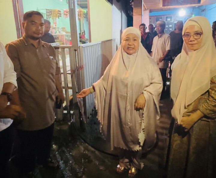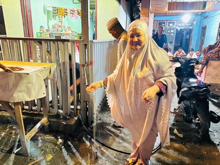 Usai menggelar Safari Ramadhan di Desa itu,Rabu 11 Maret 2026, putri Almarhum H.Murad Husain ini mengunjungi langsung lokasi yang dijadikan tempat distribusi air bersih bagi ratusan warga di wilayah itu.
